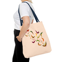 Fallin' In Love Painted Leaves Tote Bag. This one of a kind tote has beautiful Fall leaves painted my Lenny Pinna. Colors include red, orange, brown, gold and green. Celebrate Fall in style!