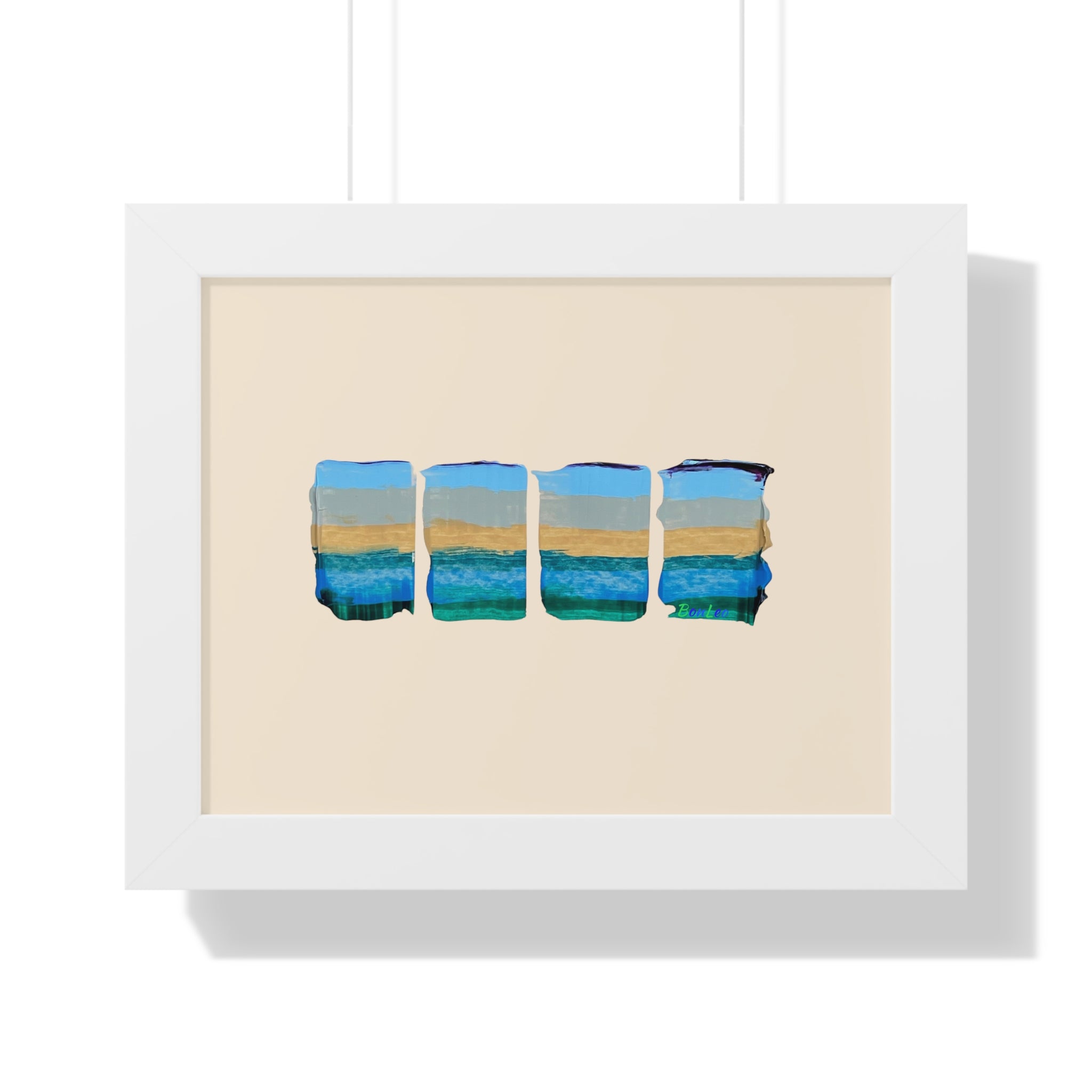 Ocean In Motion Framed Horizontal Poster. A unique design painted in one continuous motion with palette knife and acrylics by Lenny Pinna.