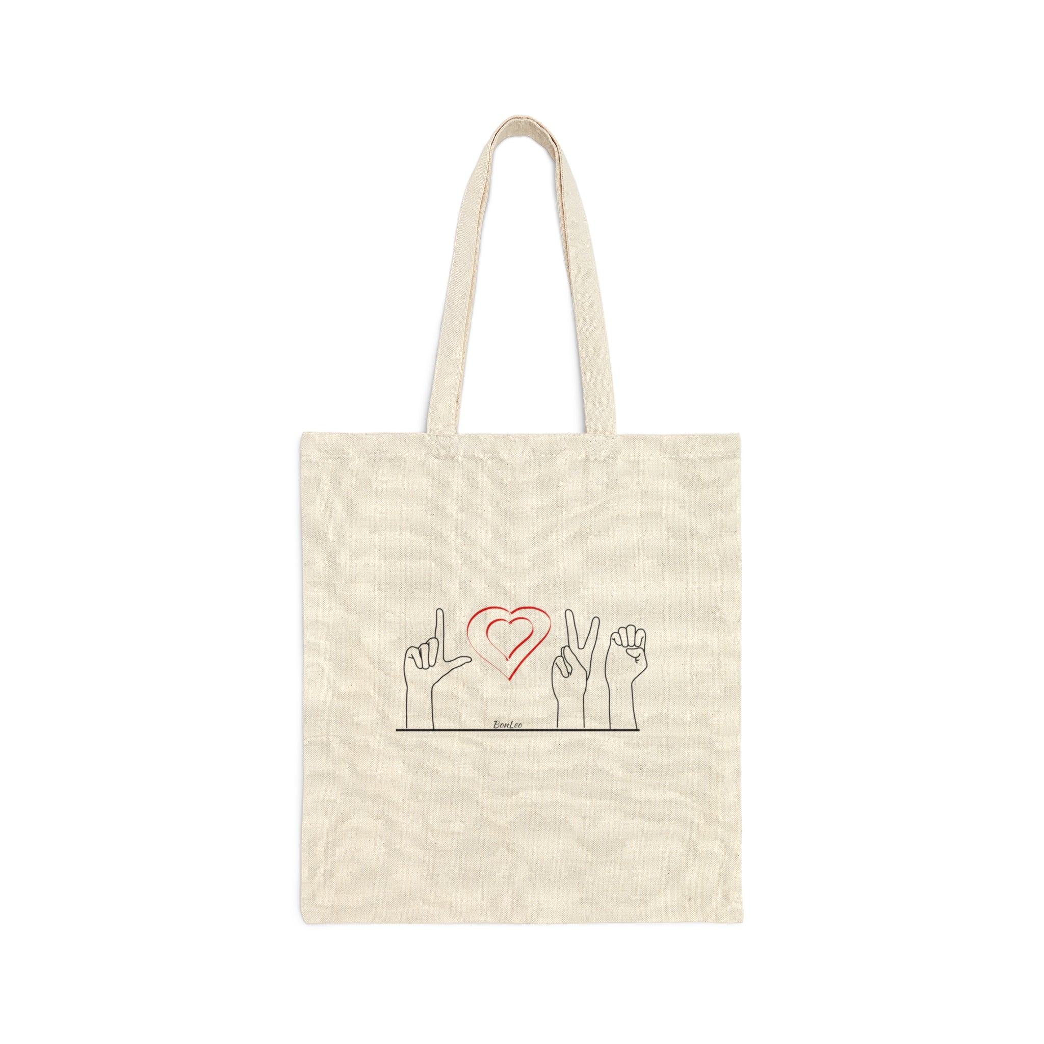 LOVE ASL American Sign Language Cotton Canvas Tote Bag