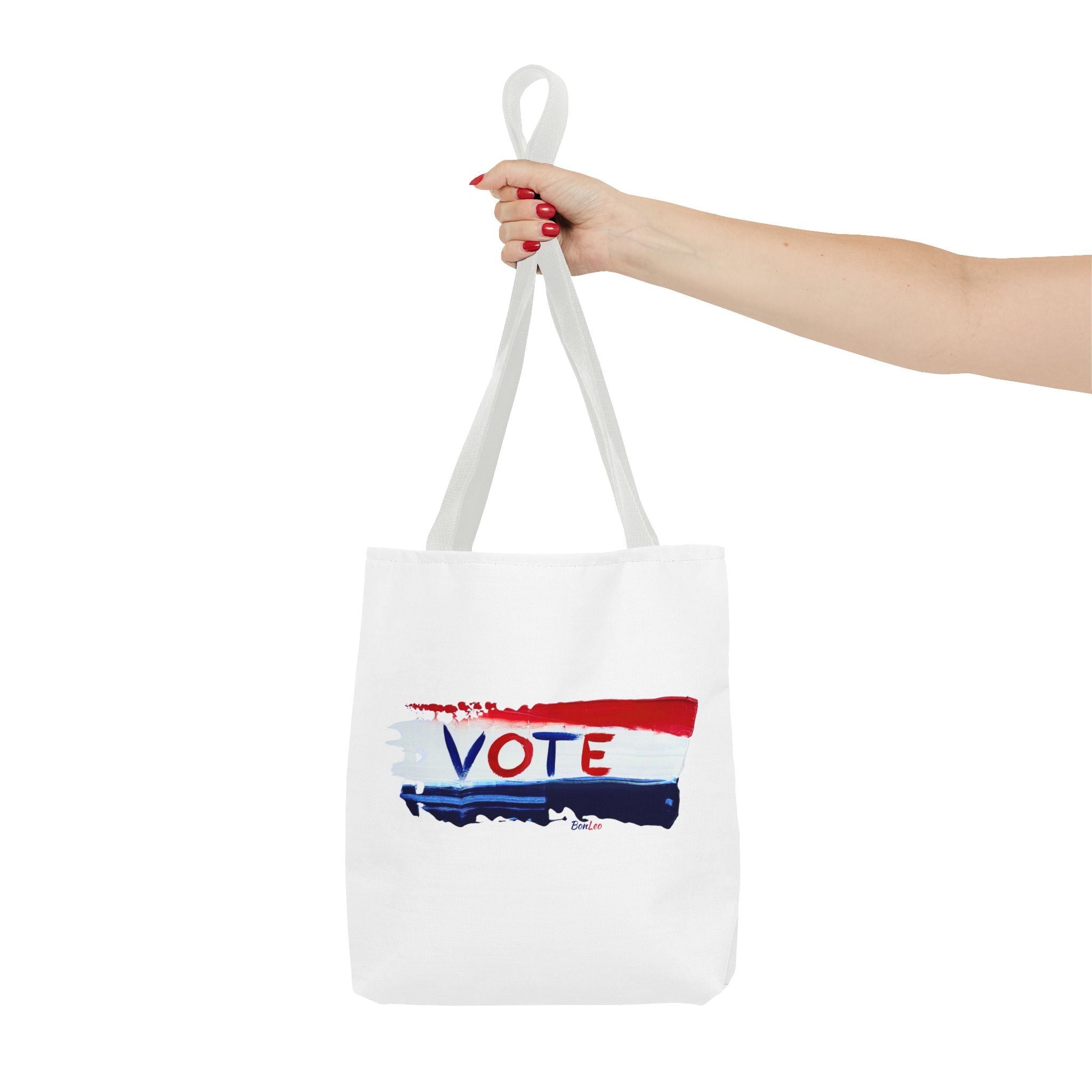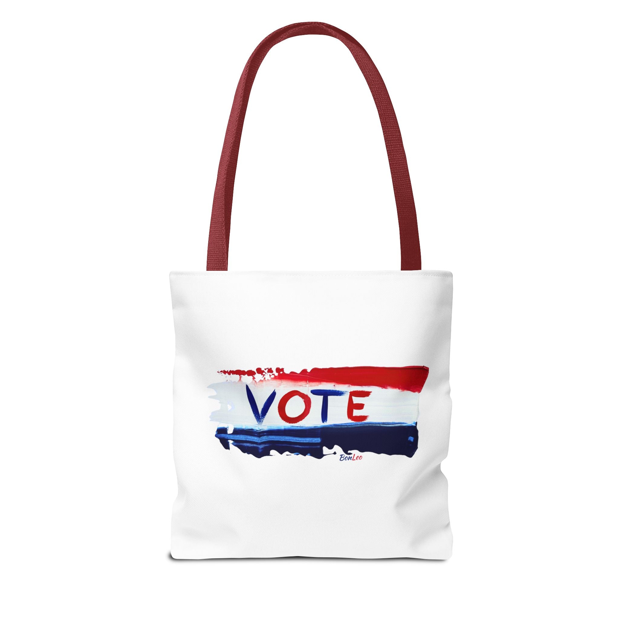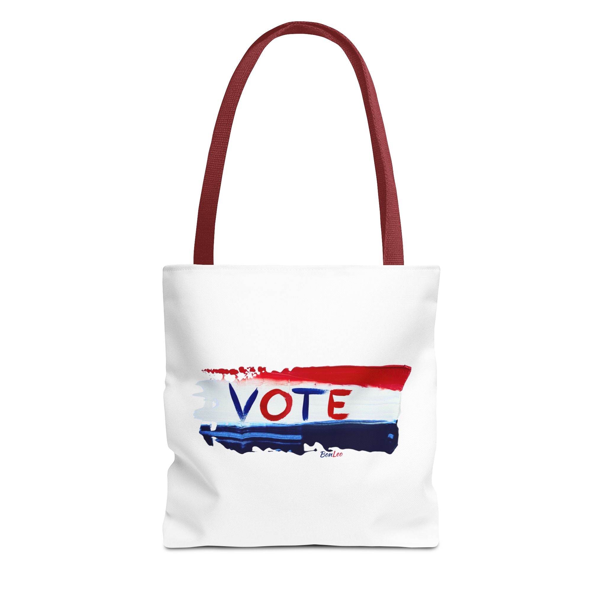 Vote Red, White and Blue Tote Bag is the perfect bag to get the word out! Get people voting. Perfect for clubs, groups, organizations and person use. Painted by Lenny Pinna.
