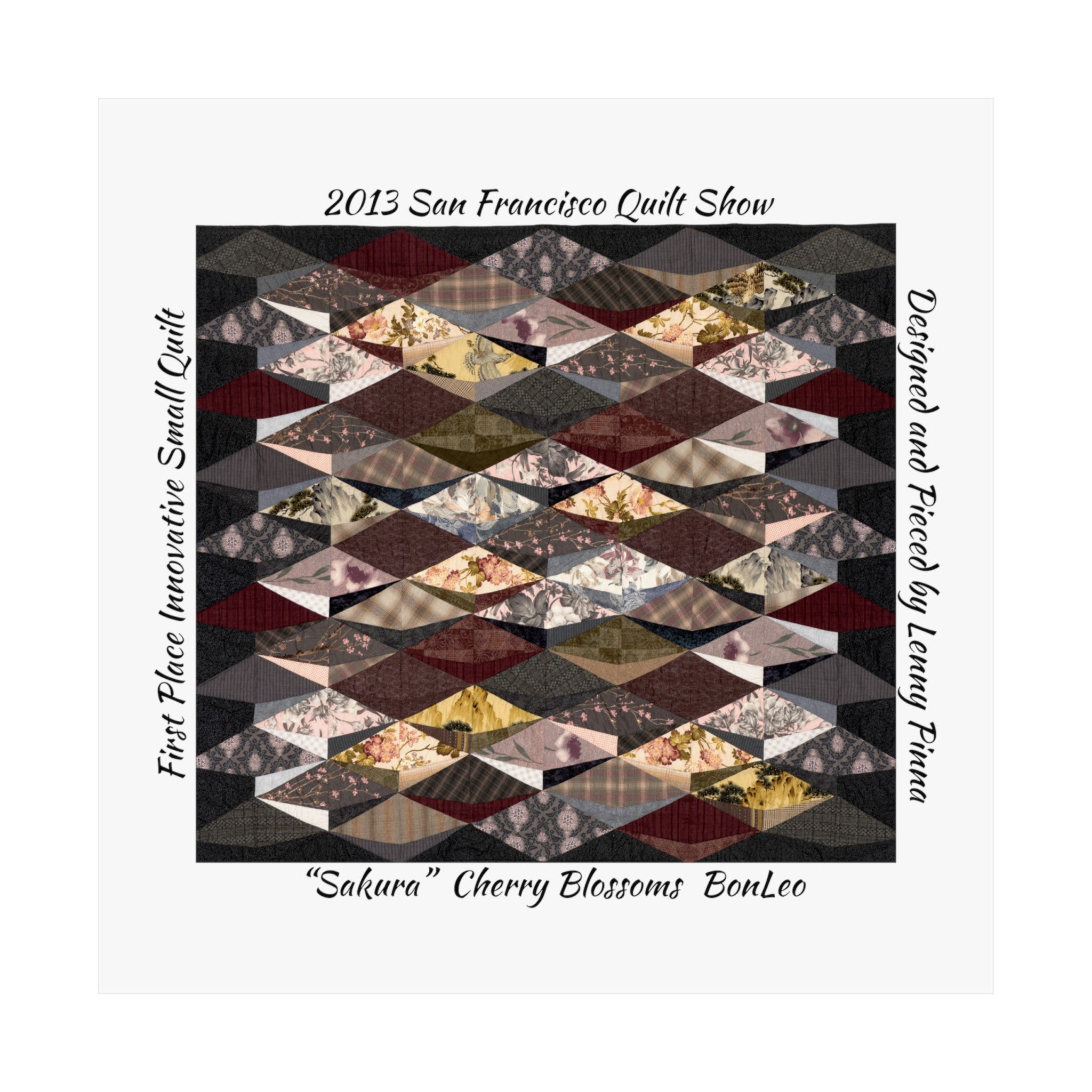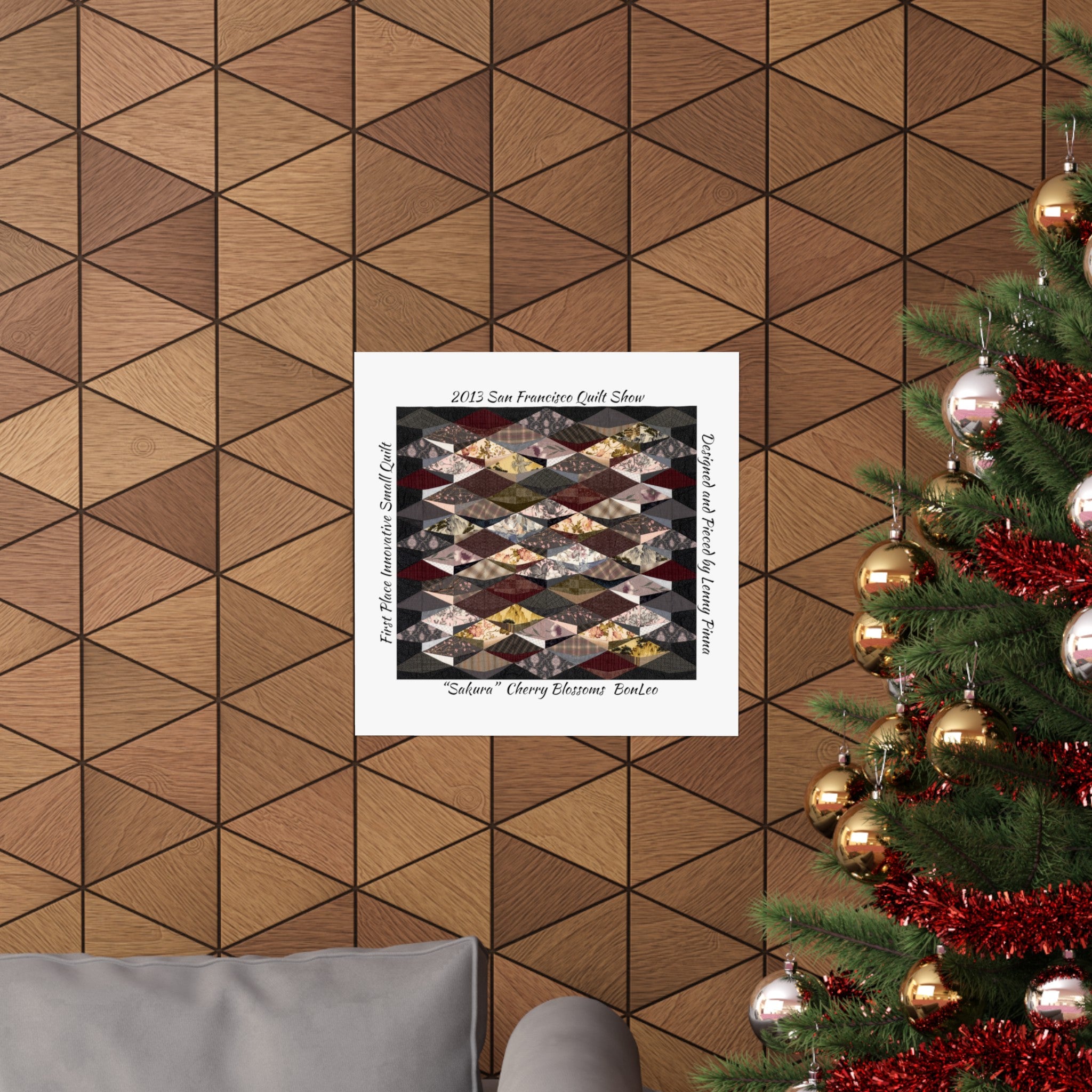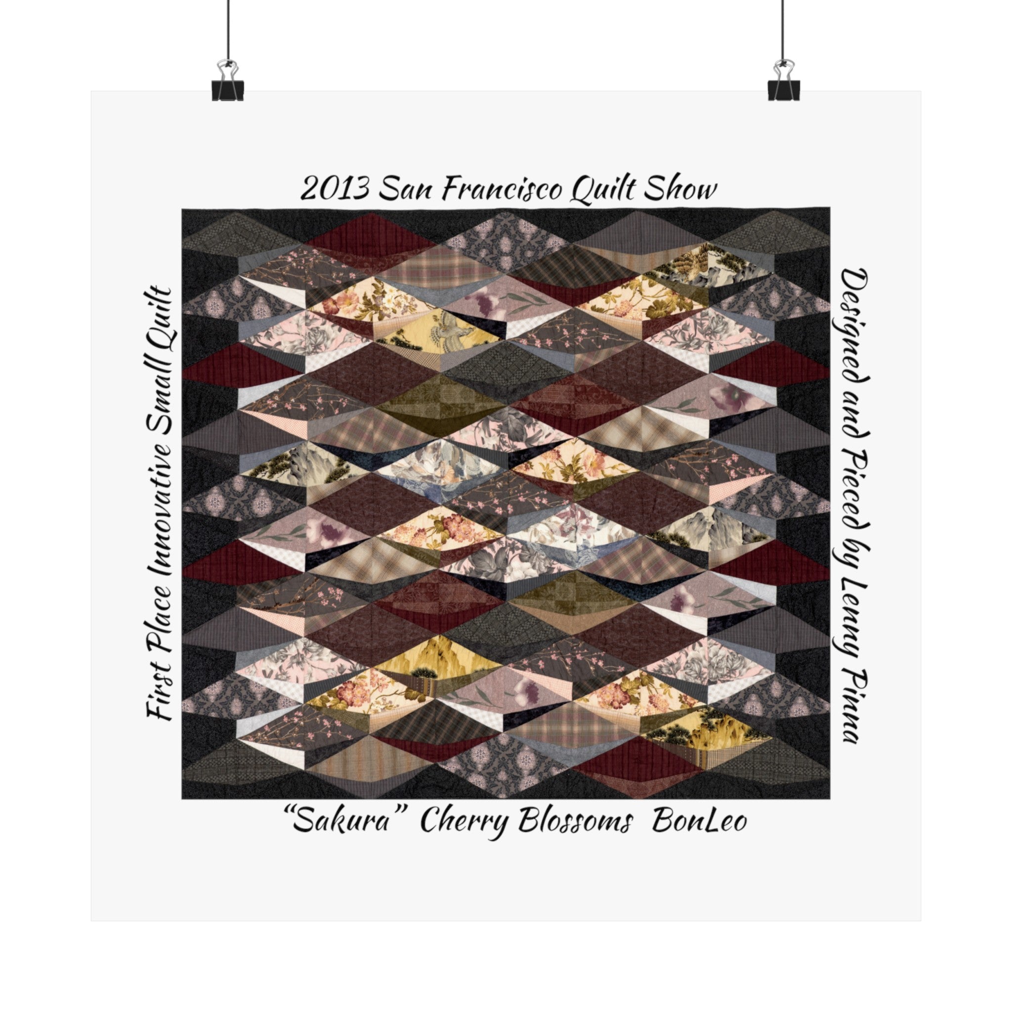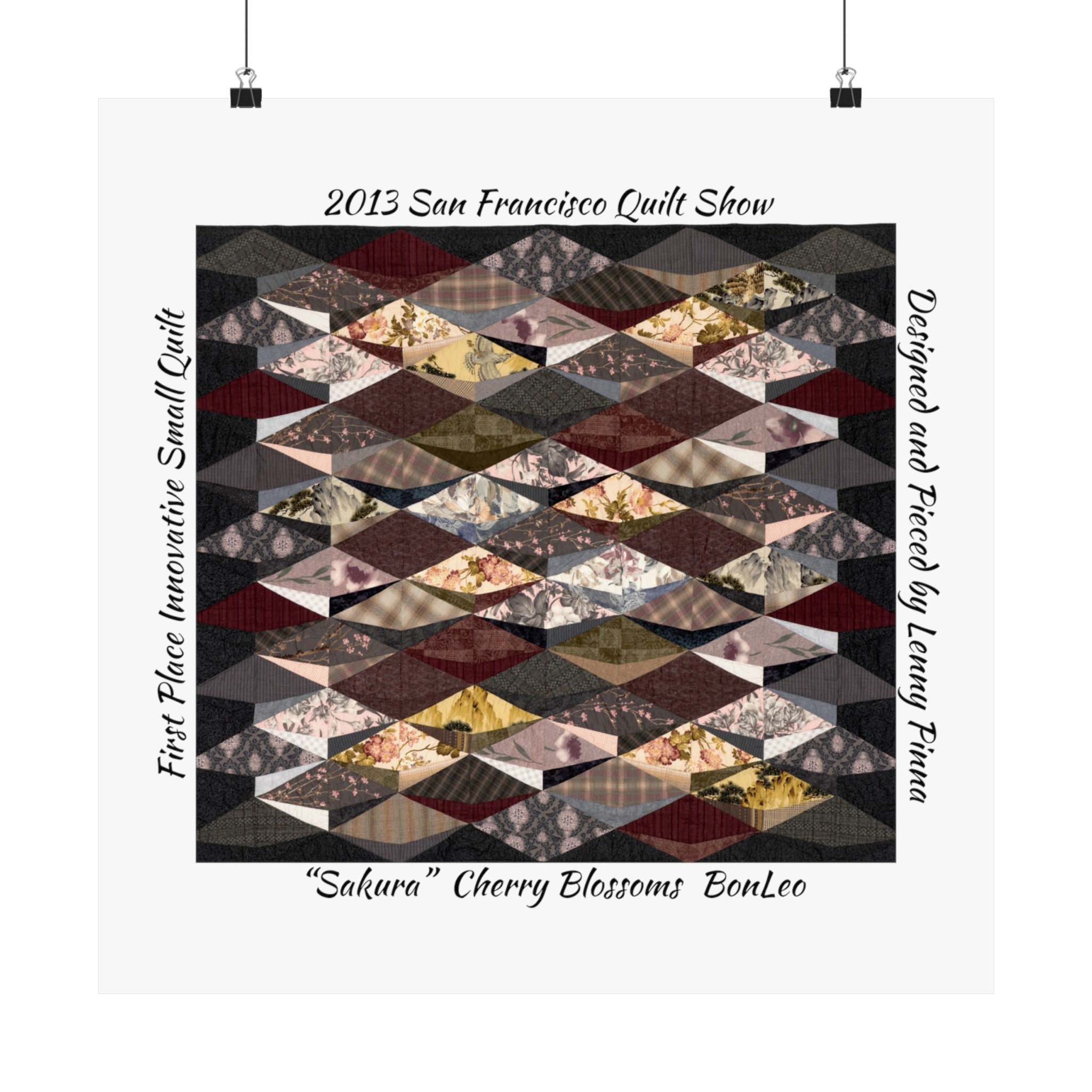 “Sakura” Cherry Blossoms Quilt Design Matte Vertical Poster. First Place Innovative Small Quilt. 2013 San Francisco Quilt Show. Designed and Pieced by Lenny Pinna