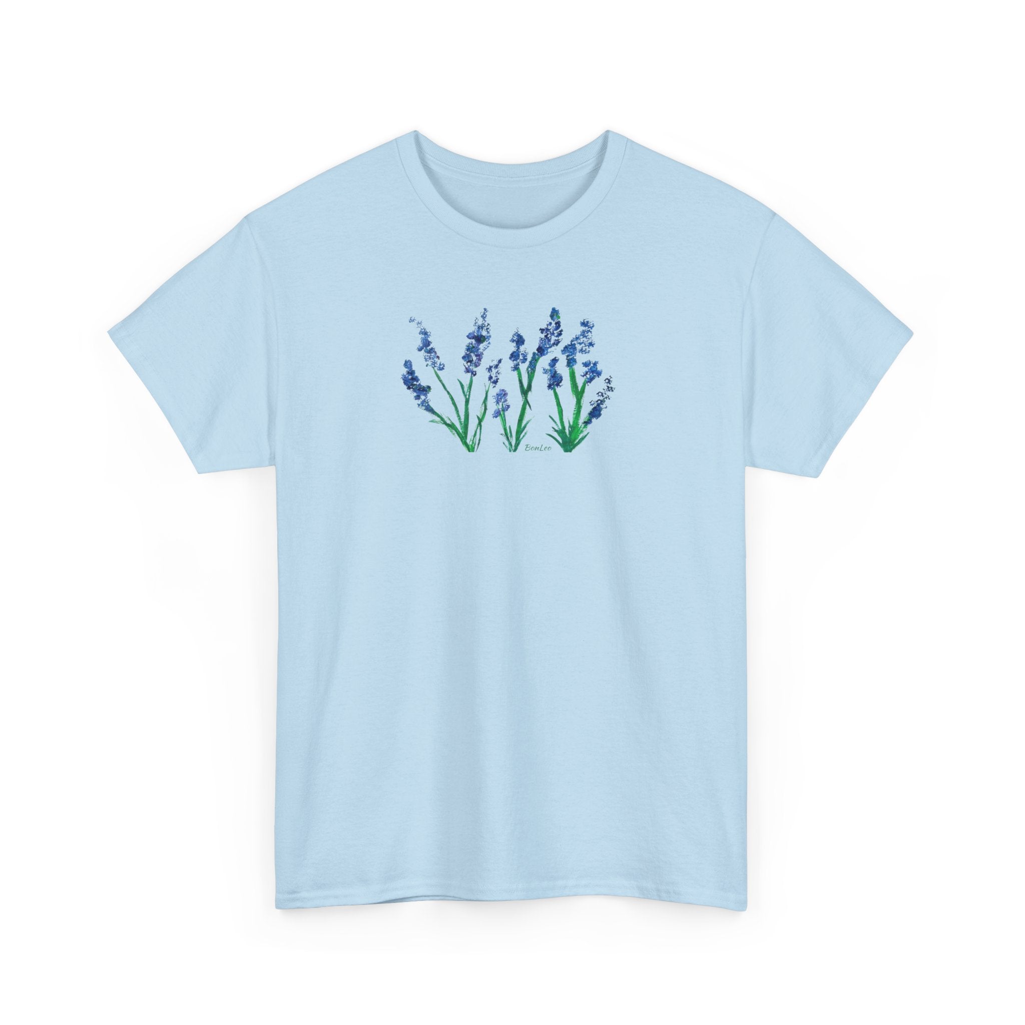 BonLeo Whimsical Garden Blue Bells Tee Painted with acrylics by Bonnie Diczhazy.